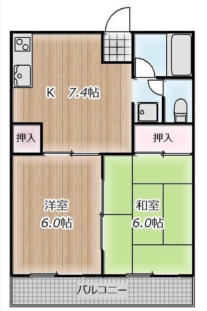 【エアコン新規設置、追い炊き機能付き、キッチン広めの7.4帖!】