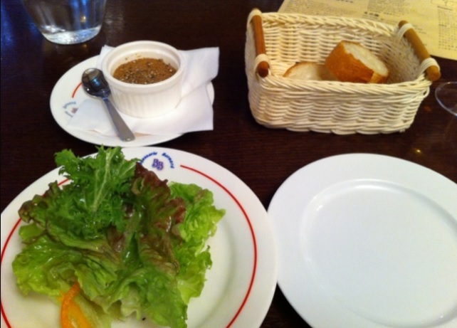 サラダとパテ?とパンもついて